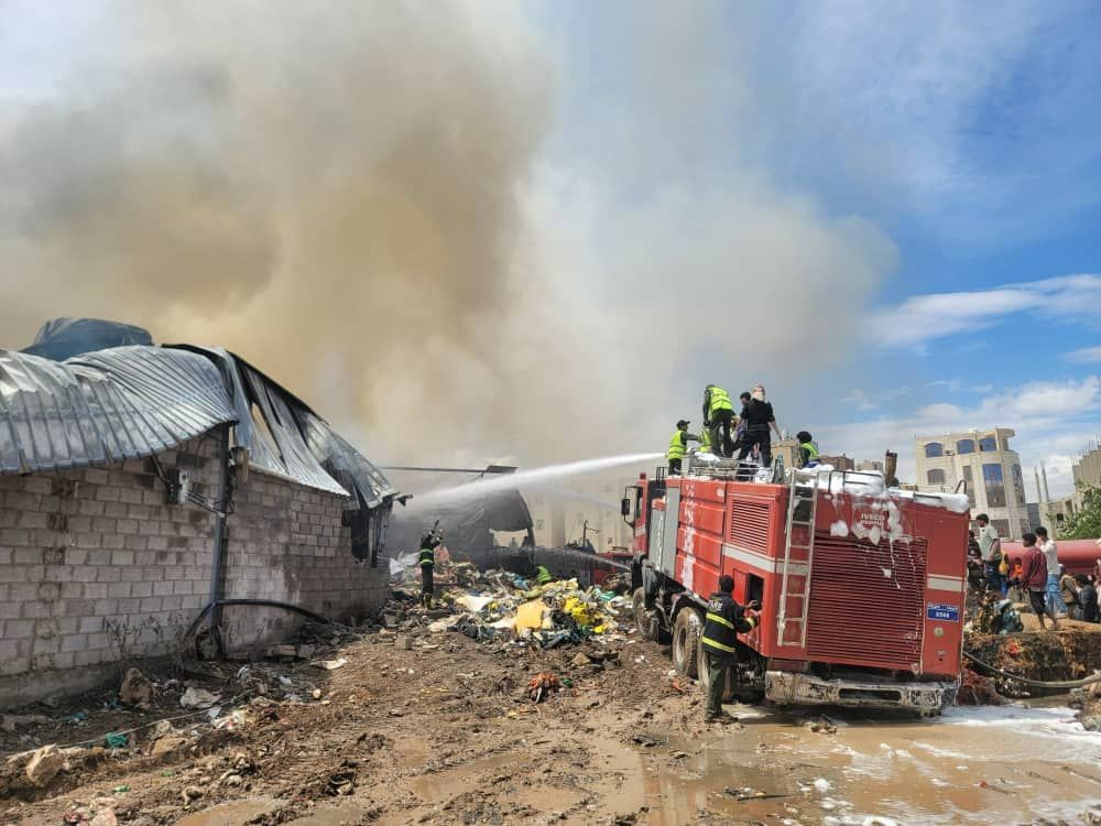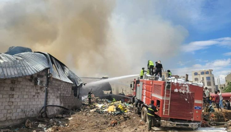 صنعاء.. إصابات وخسائر مادية كبيرة خلفها حريق هائل بمصنع للإسفنج “تفاصيل وصور”