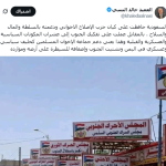 أكد النسي في منشور له على منصة “إكس”، تابعته الوكالة أن أبناء المحافظات الجنوبية منذ 10 سنوات وهم يقولون “نحن جنود سلمان”، وقدموا عشرات الآلاف من القتلى والجرحى، بينهم قتلى دفاعا عنها في الحد الجنوبي، مبينا أنه في نهاية المطاف “كافأتهم بقتلهم ودعم الفوضى والإرهاب على أرضهم ونهب مواردهم”.