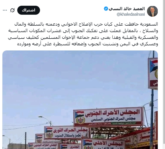 العودة إلى "خبير عسكري جنوبي يدعو إلى استخدام القوة لإجبار الرياض على تقديم التنازلات" تغريدة النسي 2 التالي