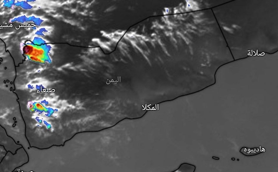 كما توقع المركز في نشرته الجوية خلال الـ 24 ساعة المقبلة، هطول أمطار متـفرقة يصحبها الرعـد أحيانـاً على أجزاء من محافظات الضالع، لحج، البيضاء، وغرب كل من الجوف ومأرب.