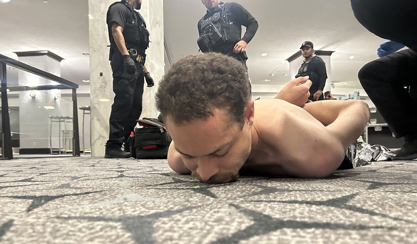 وأظهر مقطع مصوّر نشره ترامب لاحقًا على حساباته، شخصًا يندفع بسرعة داخل أحد ممرات الفندق متجاوزًا عناصر من جهاز الخدمة السرية، قبل أن يتمكنوا من السيطرة عليه واعتقاله، في واقعة أُصيب خلالها أحد العناصر برصاصة في صدره. كما نشر ترامب صورة قال إنها للمشتبه به، بدا فيها عاري الصدر، ممددًا على الأرض ومكبّل اليدين بالأصفاد.